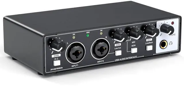1.Studio-Quality Sound Without Breaking the Bank: Get professional recordings at an affordable price with the USB Audio Interface, delivering pristine 24-bit/192kHz resolution. Designed for beginners and budget-conscious creators, it ensures studio-quality sound for music, podcasts, and streaming. 2. Plug-and-Play Simplicity for Beginners: No drivers or installationsjust plug in and start recording! The Audio Interface works seamlessly with PC, Mac, and popular recording software, making it the perfect choice for new creators and casual users. 3.Portable and Durable for Everyday Use: Weighing only 1.4lb, this compact interface is easy to carry and built to last. Whether recording at home, performing live, or on the go, its the reliable companion for capturing your creative ideas anytime, anywhere. 4. Real-Time Monitoring for Perfect Sound: Hear every note and word as you record with zero-latency monitoring. The headphone output ensures precise playback, helping you make quick adjustments for flawless results. 5. 48V Phantom Power for Professional Microphones: Compatible with condenser microphones, the 48V phantom power guarantees high-quality sound for vocals, instruments, and podcasts. A simple switch and indicator light make operation safe and easy.To ensure optimal performance, use a stable 5V/2A or higher power supply; insufficient power can lead to reduced gain performance and audio quality issues.