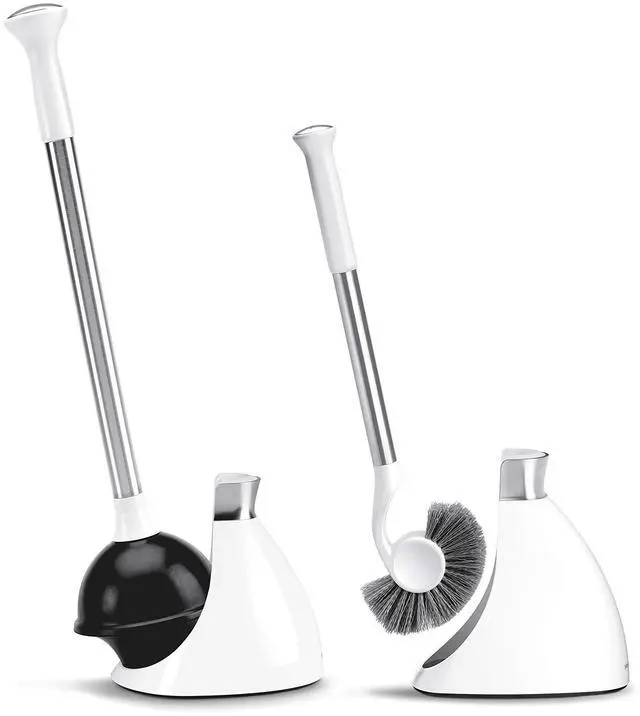 Now available as a bundle, our toilet plunger and toilet brush have both been designed with magnetic collars that secure them to their covers so you can carry them without dripping. The plunger's dome-shaped cover discreetly hides it, while the large opening at the back makes it easy to detach. Its flange is specially designed with a narrow profile to work more efficiently with modern toilets. Our toilet brush has a specially designed crescent shape to reach hard-to-clean areas around the rim. The slim, dome-shaped cover conveniently stores the toilet brush when not in use, keeping it hygienic and discreetly hidden.