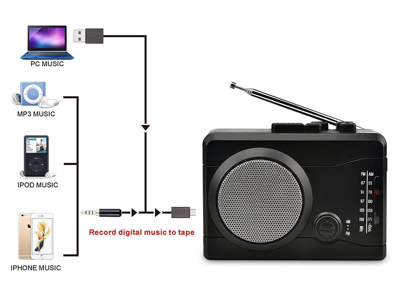 - Cassette player- play, save & edit your collected tapes with USB,this retro-style music player allows you to return to the old days and relive your good memories past