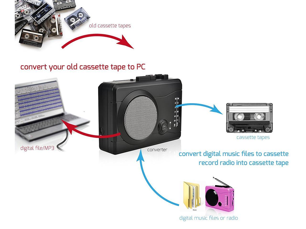 DIGITNOW Cassette Player,Personal Walkman Tape and Voice Recorder for Convert Cassette Tape to MP3 Via USB& Digital Audio Music to Tapes with Wireless AM/FM Radio,MIC in and Earphone