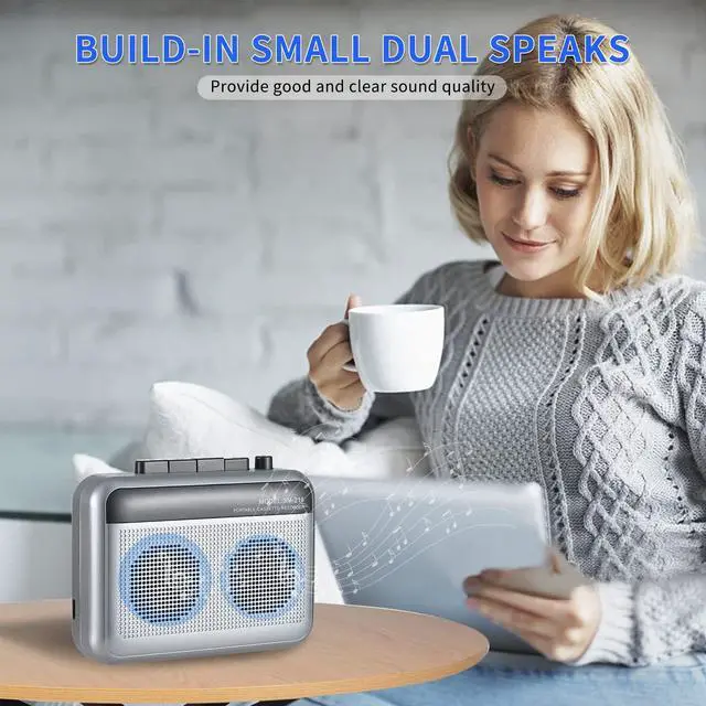 With this portable bluetooth cassette player, you will no longer be limited by the 3.5mm wire. Whether you are on bus, brewing coffee, or at work, you can listen on-the-go freely and unrestrained. Especially those who love cassettes, you no longer need to bring two pairs of headphones out.