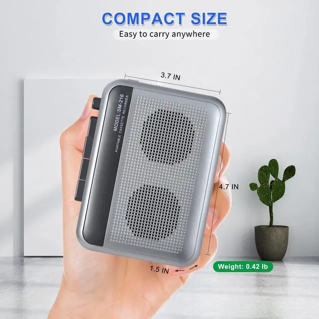 The handheld tape player was designed to be an on the go that is small enough to be with you all the time.