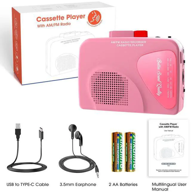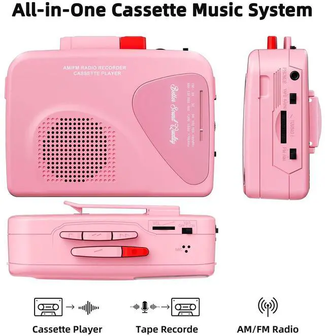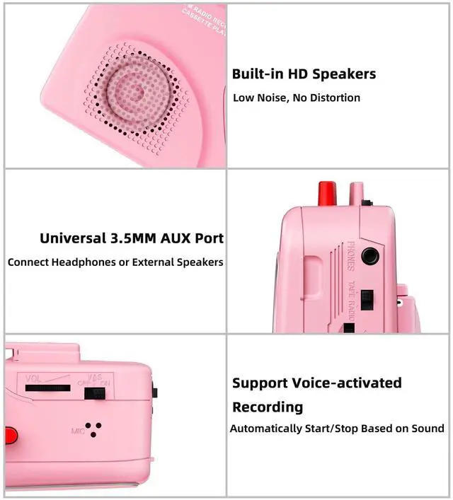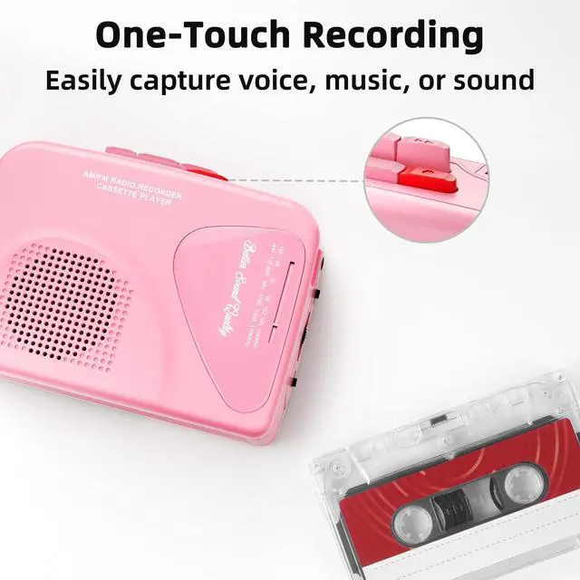 2.Insert cassette, choose source (radio/mic), adjust volume, and press red "REC" to start.