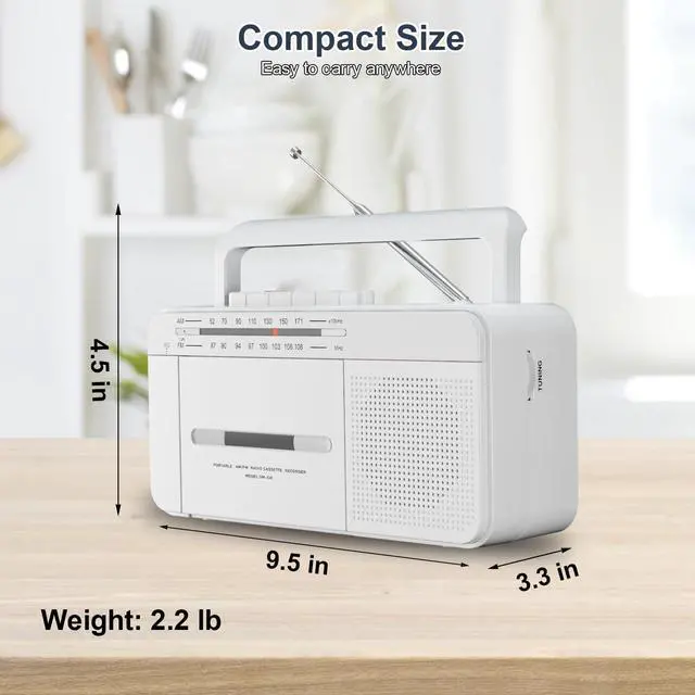The Radio Cassette Player Boombox allows you to enjoy your favorite audio cassette tapes, and listen to AM/FM radio stations with superior clarity using the upgraded DSP chip for optimal reception.