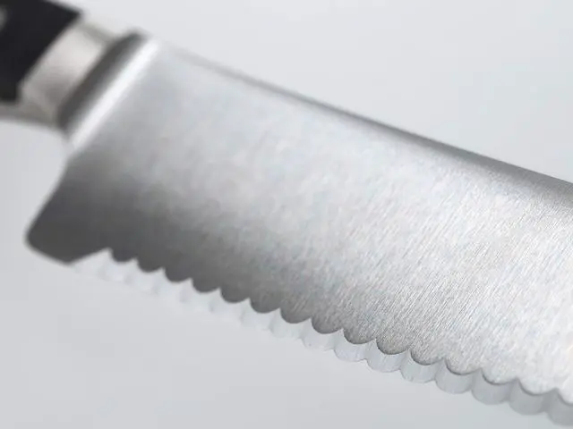 The Wusthof Classic 10-Inch Bread Knife is the perfect tool for cutting breads of all shapes and sizes. A triangular tip, the pronounced serrations and the overall length of this knife gives you the ability to cut through all kinds of crusts without having to exert undue pressure to the bread. Every Wusthof Classic knife is fully forged from a single piece of specially tempered high carbon steel to ensure outstanding strength, balance and heft. The Classic black handles are made of synthetic mat