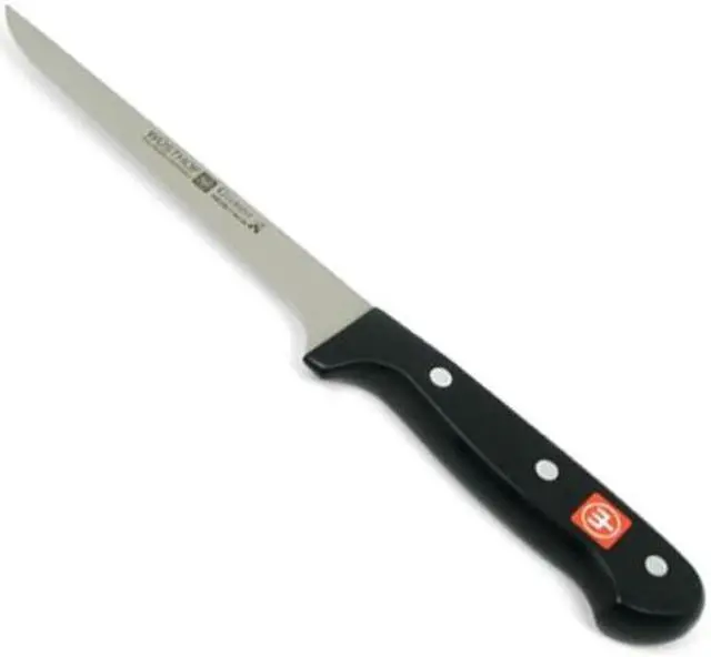 Wusthof Gourmet 5 inch Boning Knife is ideal for removing bones in pork, beef or chicken. The long narrow curved blade enables the knife to move cleanly along the bones for clean cuts.