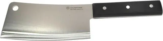 Wusthof Meat CleaverThis cleaver from Wusthof easily cuts through meat, cartilage, bone, and tough vegetables. Chop meat for stew or bones for stock, and use the back of the cleaver to tenderize cuts or the flat of the cleaver to smash garlic cloves. The wide thick blade stands up to a variety of foods and can be used to transfer ingredients from your cutting board to pots, pans, and bowls.