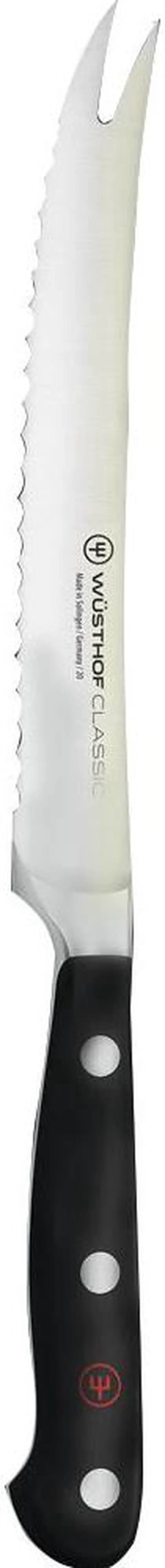 The two-pronged fork tip allows you to serve or dish your neatly cut food without dirtying another tool. Every Wusthof Classic knife is full.
