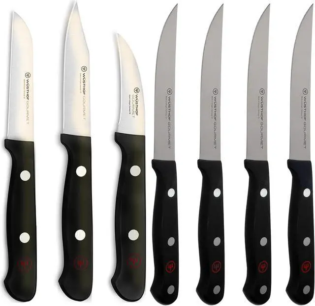 WUSTHOF GOURMET 4-PIECE STEAK KNIFE SET - 1125060403 + WUSTHOF GOURMET 3-PIECE PARING KNIFE SET Wusthof Gourmet 4-Piece Steak Knife Set - 1125060403 This set of four steak knives from the Wusthof Gourmet collection will cut steak beautifully and look great on your table. Guests will be impressed by both the looks and the performance of your steak knives.