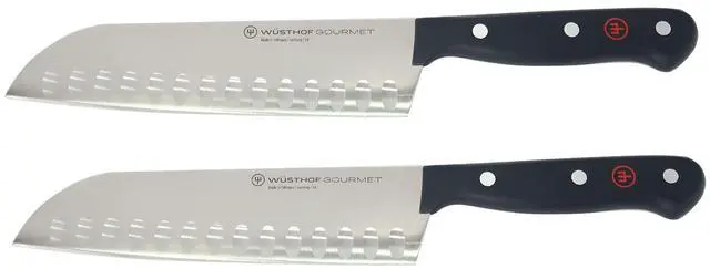 2X WUSTHOF GOURMET 7" HOLLOW EDGE SANTOKU KNIFE, BLACKWusthof Gourmet 7" Hollow Edge Santoku Knife, BlackKEY_TAB Since 1814 WÜSTHOF has set the standard for designing and manufacturing precision-forged knives.