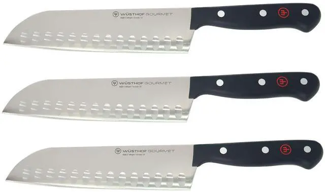 3X WUSTHOF GOURMET 7" HOLLOW EDGE SANTOKU KNIFE, BLACKWusthof Gourmet 7" Hollow Edge Santoku KnifeSince 1814 WÜSTHOF has set the standard for designing and manufacturing precision-forged knives.