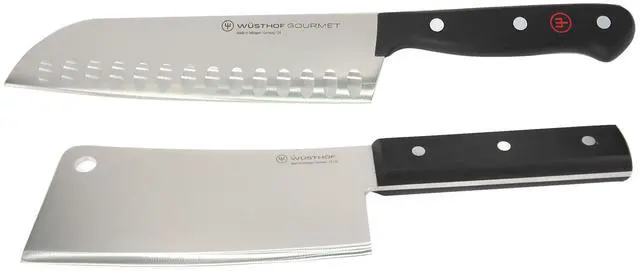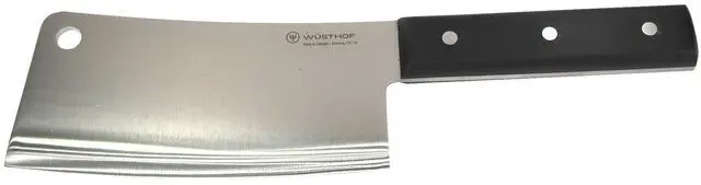 WÜSTHOF CLASSIC 6" CLEAVER KNIVE, BLACK + WUSTHOF GOURMET 7" HOLLOW EDGE SANTOKU KNIFE, BLACKWusthof Meat CleaverThis cleaver from Wusthof easily cuts through meat, cartilage, bone, and tough vegetables. Chop meat for stew or bones for stock, and use the back of the cleaver to tenderize cuts or the flat of the cleaver to smash garlic cloves. The wide thick blade stands up to a variety of foods and can be used to transfer ingredients from your cutting board to pots, pans, and bowls.