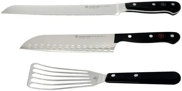 - Wusthof Gourmet 7" Hollow Edge Santoku Knife, Black