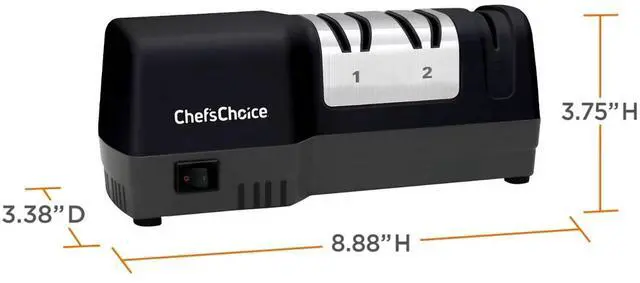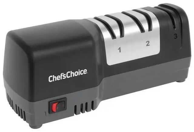 Elevate your cooking experience with sharper knives. The Chef'sChoice 3-Stage Hybrid Knife Sharpener is the ultimate solution to restore and maintain razor-sharp blades at home. Say goodbye to dull knives, sharpen them with confidence. Dull knives not only slow you down but also make cooking less safe. This electric and manual knife sharpener is designed to restore, maintain, and protect your blades with precision, so you can chop, slice, and carve effortlessly. Featuring a 3-stage sharpening system, this hybrid model combines the convenience of electric power with the control of manual honing.