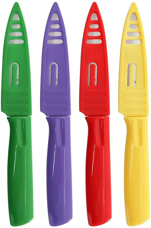 Brighten up your kitchen prep with the Colorsplash 4 Piece Paring Knife Set in assorted colors. Designed for both style and performance, each knife features a vibrant, eye-catching hue that makes food prep more fun and organized.