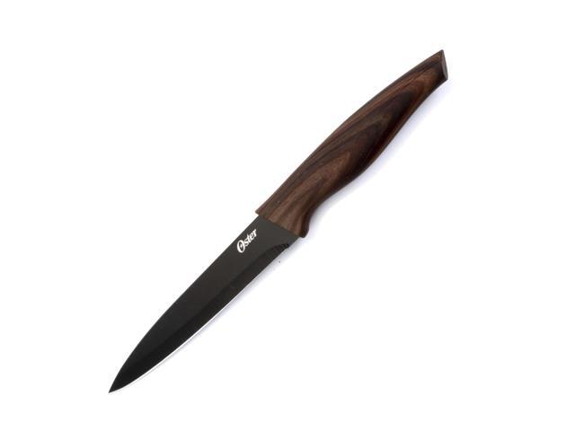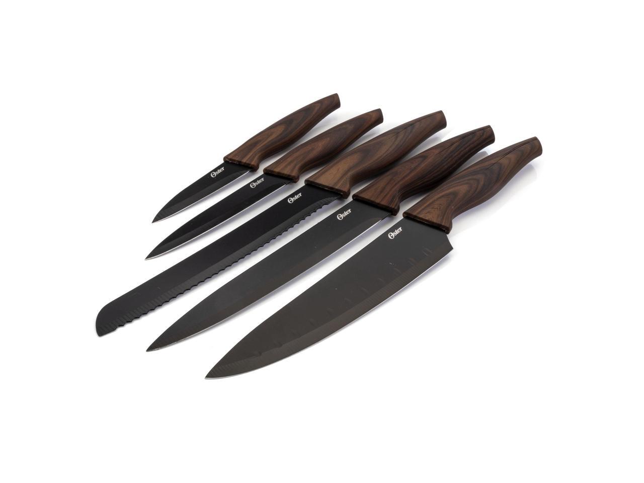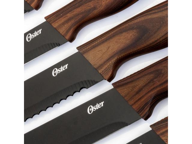 Oster Godfrey 5 Piece Stainless Steel Black Cutlery Set with Wood Print Handles