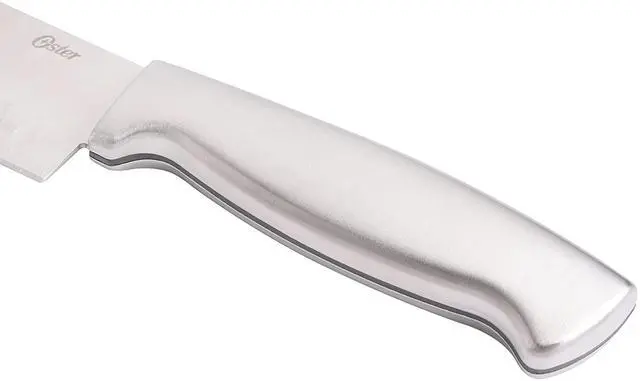 Get slicing and dicing in the kitchen with this Oster Baldwyn 6.5 Inch High Carbon Stainless Steel Santoku Knife. Featuring high carbon stainless steel blade and ergonomic handle design, this knife can cut your food with ease while your hand stays comfortable. To ensure this knife stays in prime condition for years of use, make sure to hand wash only. Take home this fine quality blade for your kitchen today!