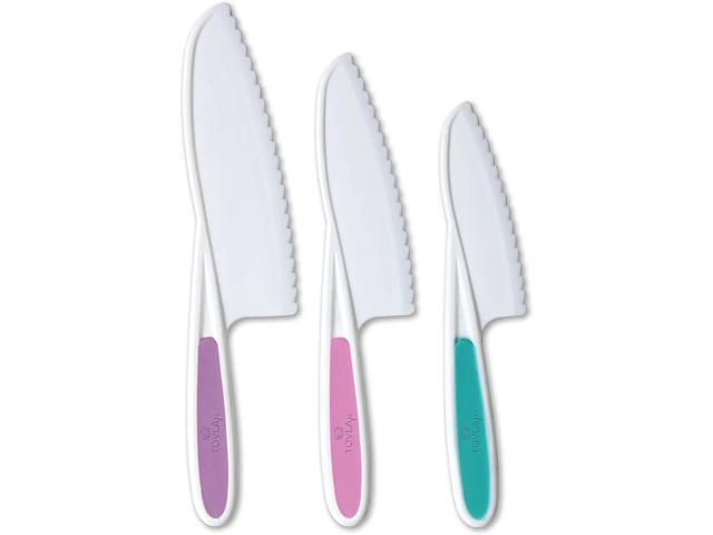 Tovla Jr. Knives for Kids 3-Piece Nylon Kitchen Baking Knife Set: Children's Cooking Knives in 3 Sizes & Colors - Firm Grip, Serrated Edges, BPA-Free Kids' Knives - Multi Green Multi-Pink