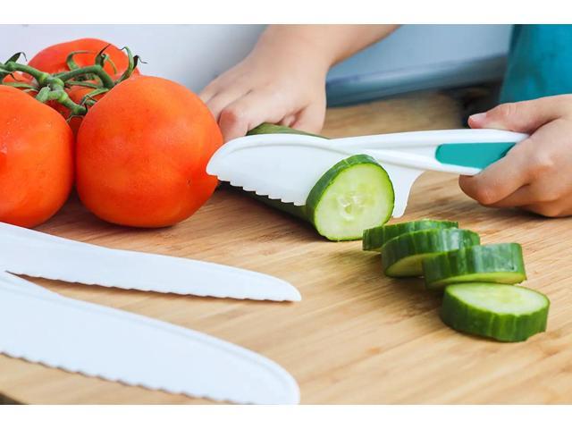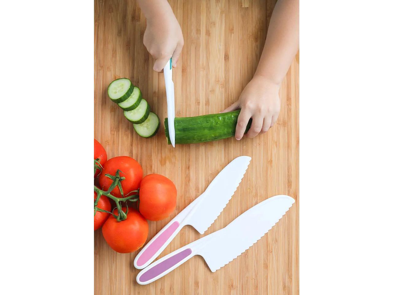 - SAFE, PRECISION CUTTING OR YOUR MONEY BACK! We take great pride in the quality and efficiency of our kids chef knives, and we know you and your children will LOVE them! This is why we are backing our set with our 100% Tovla Money Back Guarantee, making your experience absolutely RISK-FREE!^^PROTECT LITTLE CHEFS FINGERS! Unleash your little angels culinary skills with the top safety kitchen knife set for kids! Made of premium nylon material, with serrated edges for precision cutting of lettuce, salad, cheese or bread, this little chef set will help safeguard little fingers from the dangers and risks of sharp metal knives!^^GREAT GIFT FOR KIDS! Why stop children from experimenting in the kitchen? Fear no more accidents, as this plastic knife set allows kids to join you in your kitchen activities, preparing them to be independent chefs! Inspire apprentice cooks to be safe with an excellent childrens knife set!