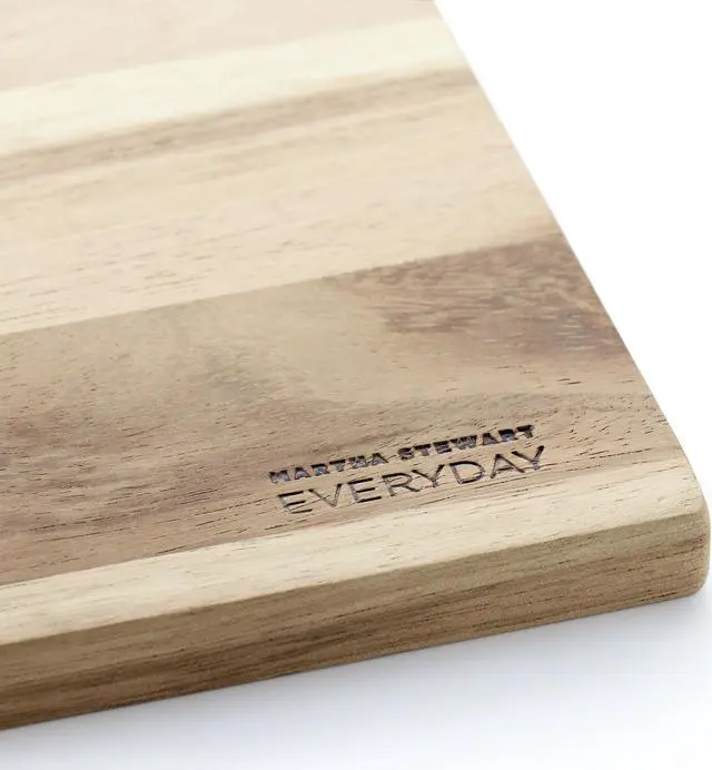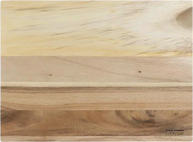 The Martha Stewart Everyday Westhaven 15 x 11 Inch Rectangle Acacia Wood Cutting Board is a beautiful addition to any kitchen workspace. Features a large cutting surface for comfortable use regardless of how large the task is. The acacia wood material is durable enough for chopping and visually ideal for serving snacks. The wood material naturally provides an antibacterial surface and is water resistant. For proper care and longevity, the cutting board is hand wash only. Cut meats and veggies, or set a stunning assortment of cheeses and finger foods for the perfect display.