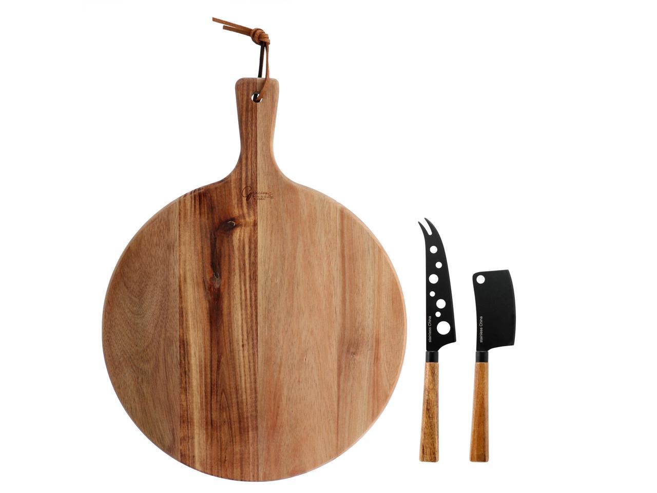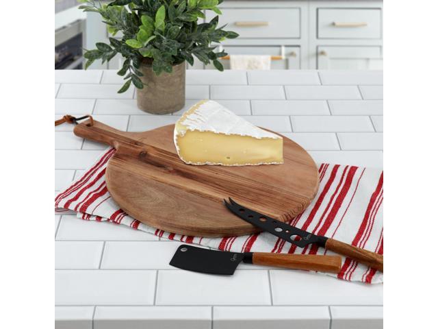 Gibson Elite 3 Piece Acacia Wood Charcuterie Serving Board and Cheese Knife Set in Brown