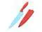 Brighten up your kitchen with this Gibson Home Village Vines 3 Piece Cutting Board and Knife Set. The knife and matching cutting board both feature a beautiful blue leaf pattern paired with a gorgeous red rim and handle. For safety, the knife includes a red sheath so you don't have to worry about accidental cuts when not in use. Made from durable stainless steel, this blade is sure to last for years to come. This handy knife set and cutting board will make a great addition to any kitchen while offering some character.