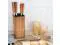 The innovative block design includes universal slots that provide safe, secure storage for each knife, preventing the blades from coming into contact with one another and helping to preserve their sharp edges over time. This smart design ensures that your knives stay in top condition without dulling from improper storage. Both the block and the ergonomic handles of the knives feature a stylish wood print pattern, combining the warmth of wood with the durability of modern materials, making this set not only a functional tool but also a striking addition to your kitchen.