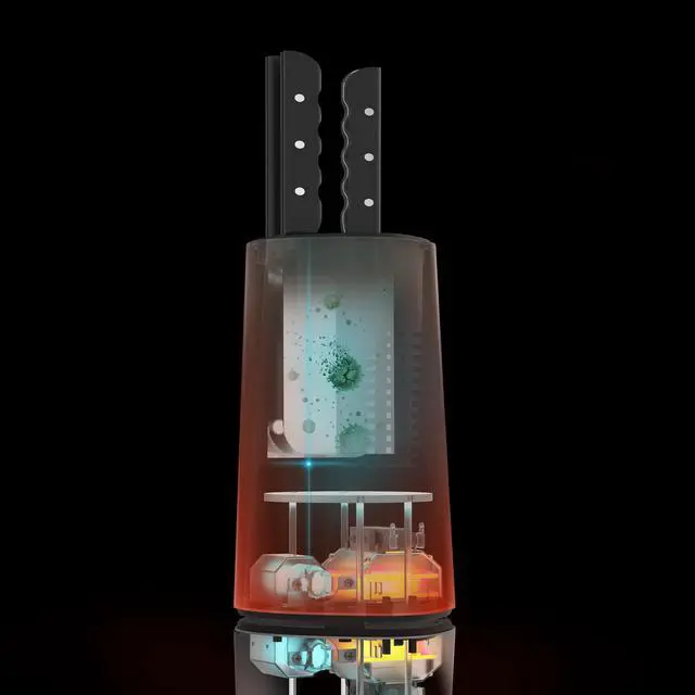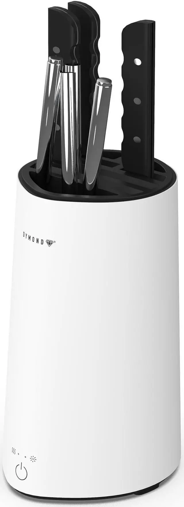 Dymonds Built-in UV Knife Block Holder aids in keeping your cutlery squeaky clean at the press of a button. The knife block can hold up to 6 knives and has slots for any spoons, forks, or chopsticks you may need to store. The sleek and modern design is compact and fit for any kitchen