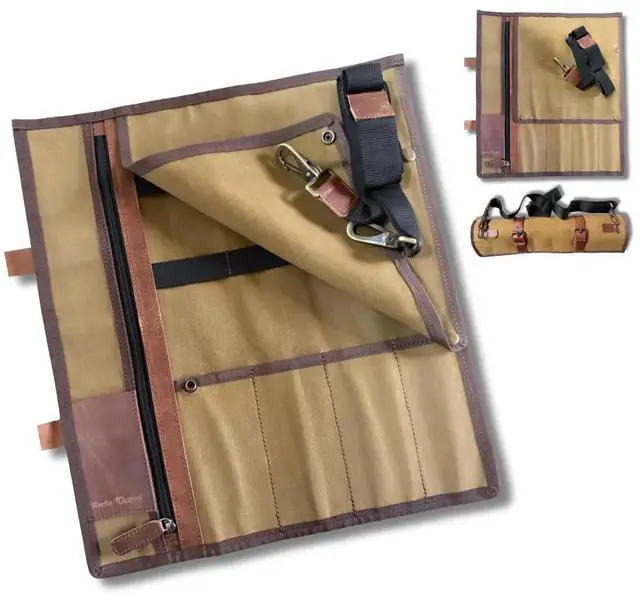 Why Choose Waxed Canvas? The water-resistant waxed canvas provides superior protection against spills and weather while developing character over time. Reinforced stitching and brass hardware ensure your knives stay secure during transport, making this the perfect choice for mobile culinary professionals.