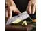 Frosted blade with double-side grooves reduces cutting resistance and prevents food from sticking. Hand-sharpened 15° edge allows effortless slicing, dicing, and chopping of vegetables, fruits, bread, meat, and fish.