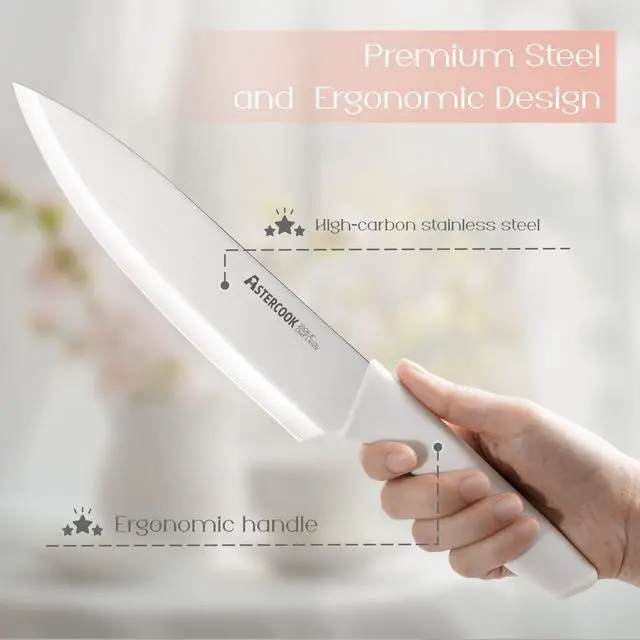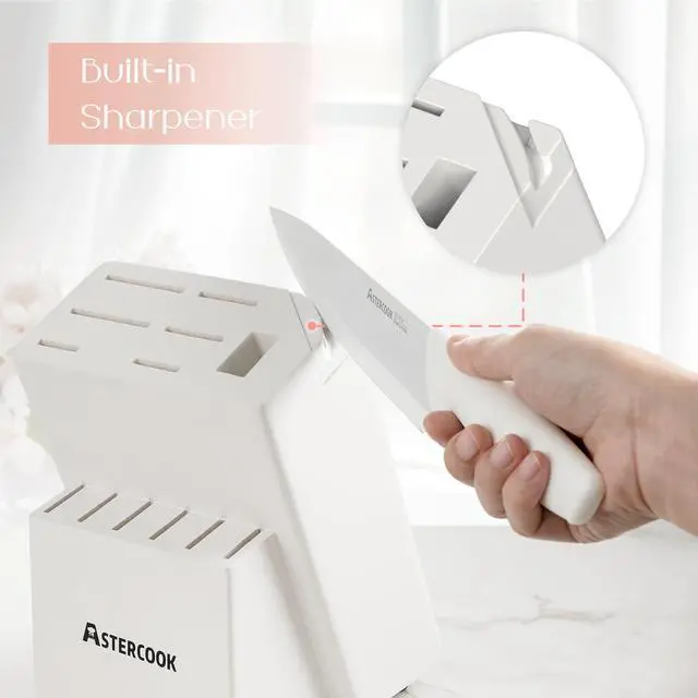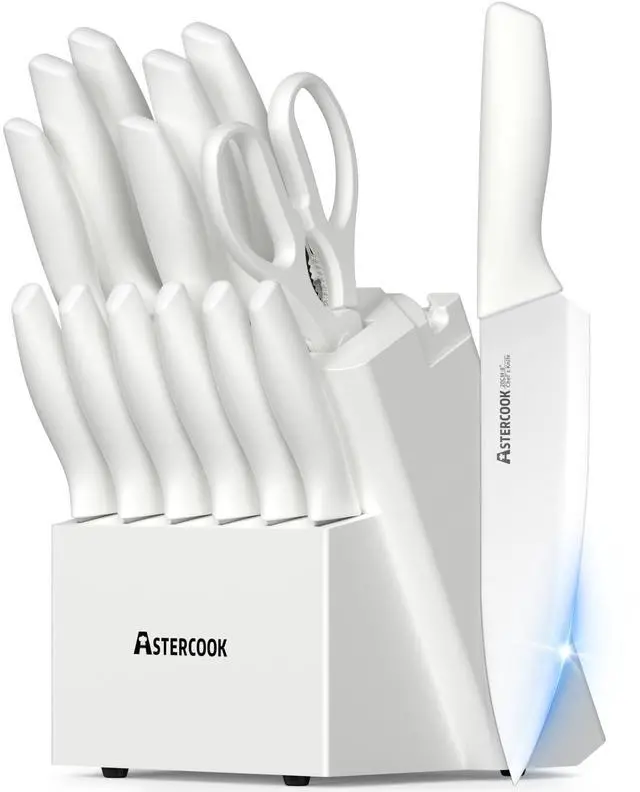 Knife Set for Kitchen 15 Piece with Block and Sharpener Kitchen Knives Sharp Blade Dishwasher Safe Knife Block Set with Anti-slip Ergonomic Handle, Elegant White