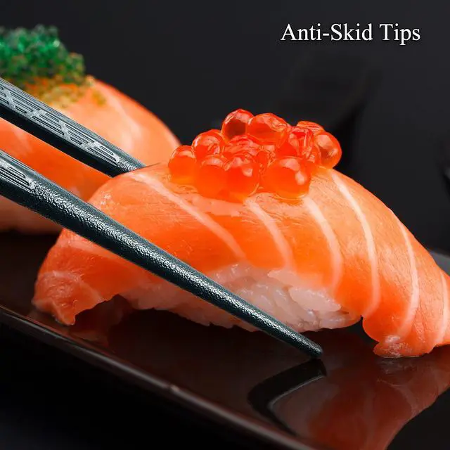 Our fiberglass reusable chopsticks designed with hexagonal-shaped carved and anti-rolling body. It's also easy to pick up food with non-skid frosted tips. Avoid embarrassing moments of dropping food. Non-absorbent material, preventing chopsticks from getting stained when in contact with food after long time use.