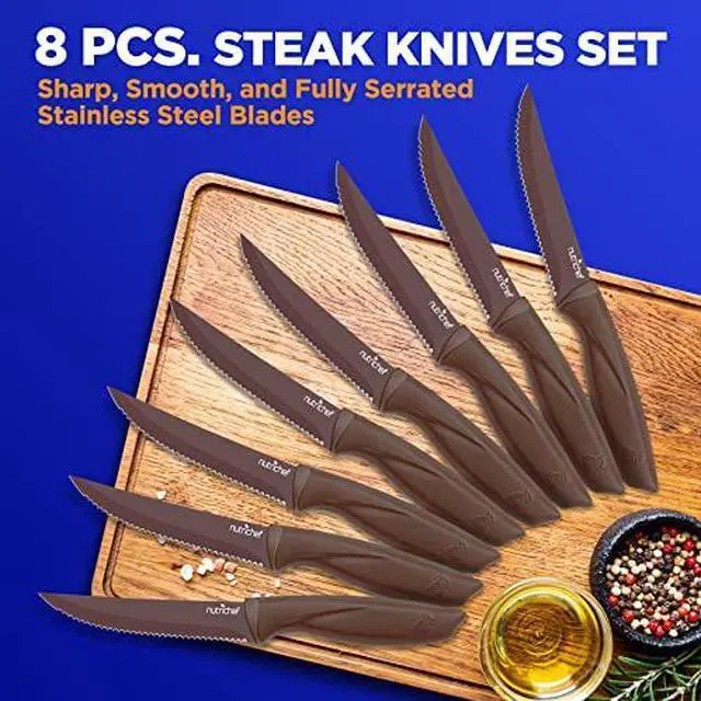 8 PIECE SET: This high-quality stainless steel knife set comes w/ 8 pcs steak knives for excellent precision cutting! features sharp, smooth, and fully serrated stainless steel blades