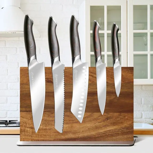 | Included Components | Chef knife,Santoku Knife ,Bread knife,Fruit Knife,Paring Knife,Wooden Magnetic Knife Holder |