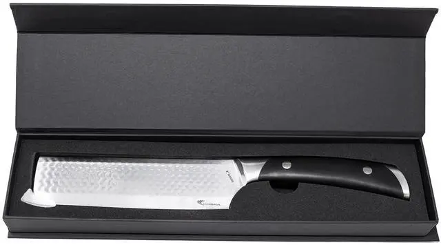The Kalorik SAK 47785 Cobra 6? Nakiri Knife is a high-quality kitchen utensil made of Japanese high-carbon stainless steel. This single nakiri knife, designed by Kalorik, is perfect for cutting and chopping vegetables with its sharp and durable blade. The sleek silver color and stainless steel handle add a touch of elegance to your kitchen. Crafted in China, this knife is a must-have for any cooking enthusiast looking for precision and quality in their kitchen tools.
