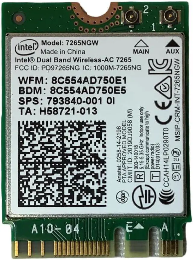 HP 793840-001 Intel Dual Band Wireless-Ac 7265 802.11 Ac 2X2 Wifi And Bluetooth 4.0 Combination Wlan Adapter