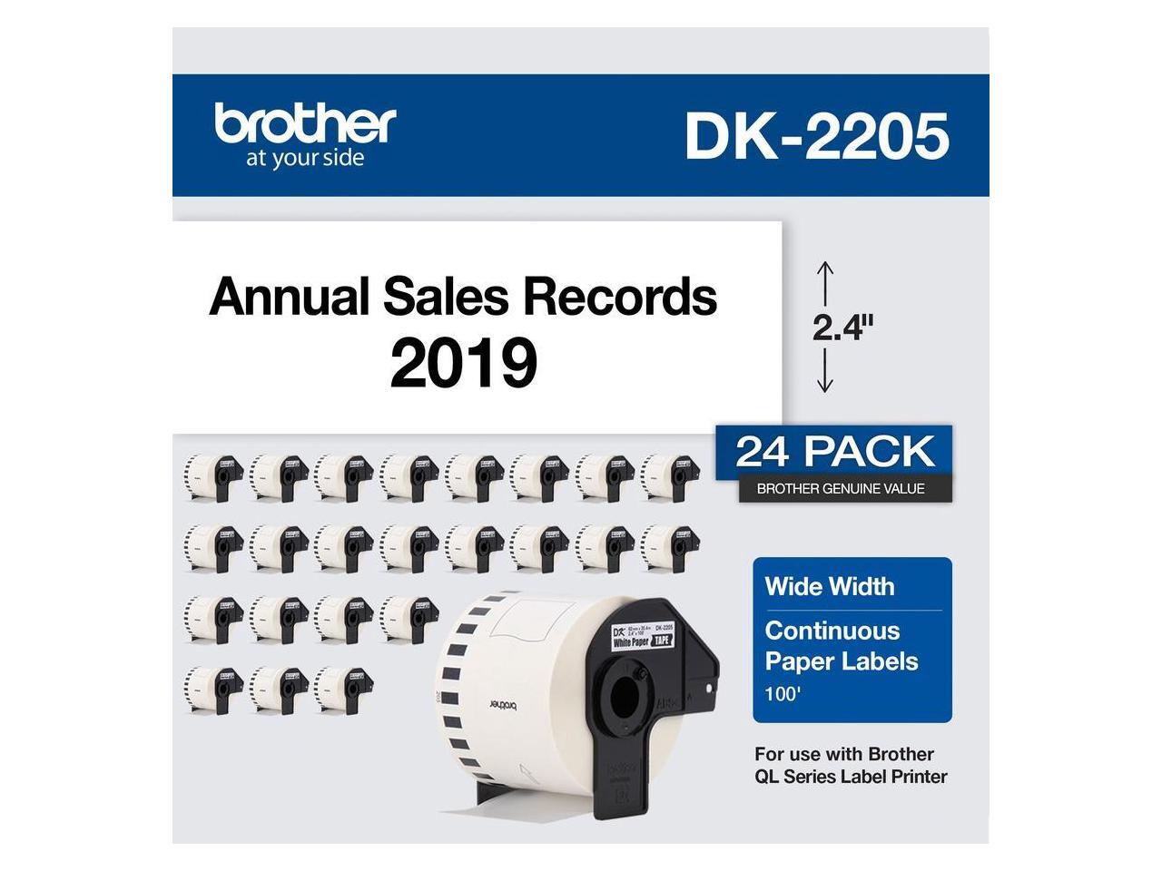 Brother Continuous Paper Label Tape, 2.4" x 100 ft, White, 24 Rolls/Pack