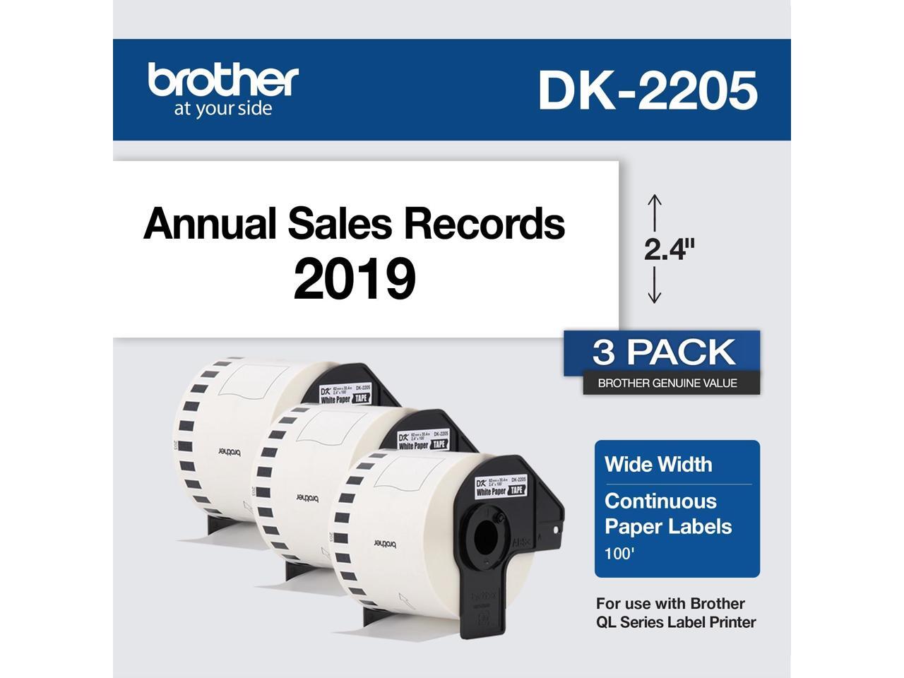 Continuous Paper Label Tape, 2.4" x 100 ft, White, 3 Rolls/Pack