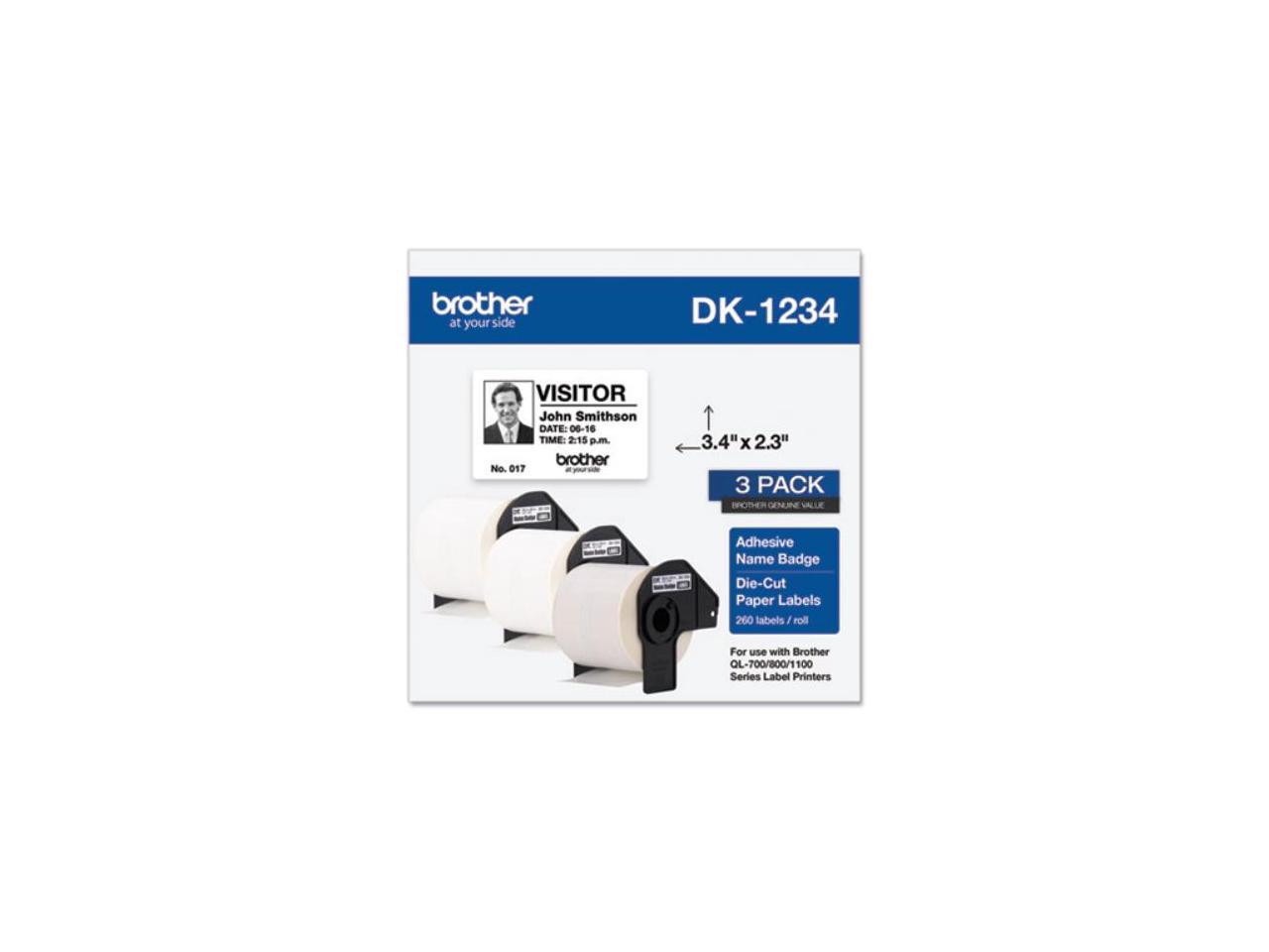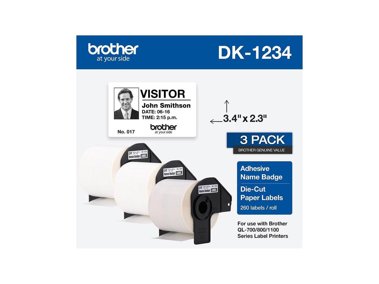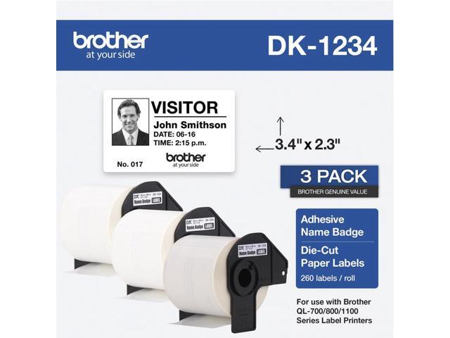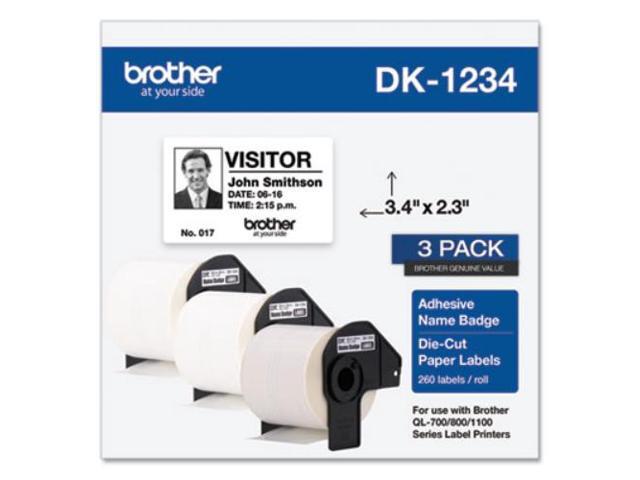 Brother DK-1234 Adhesive Name Badge Paper Labels 3-4/10" x 2-3/10" Black on White 260 Labels/Roll 3 Rolls/Box (DK-12343PK)