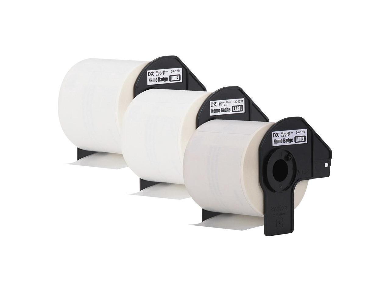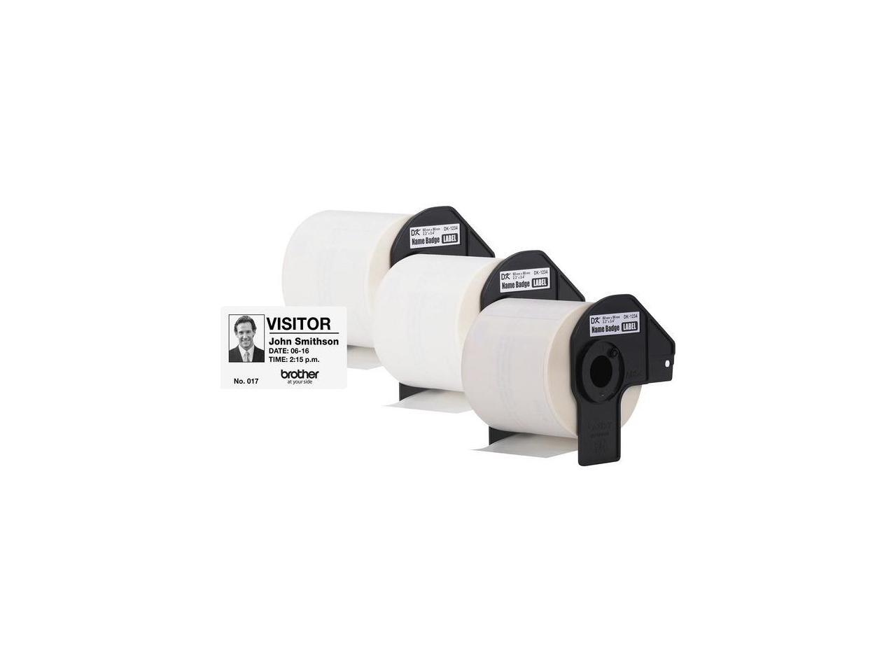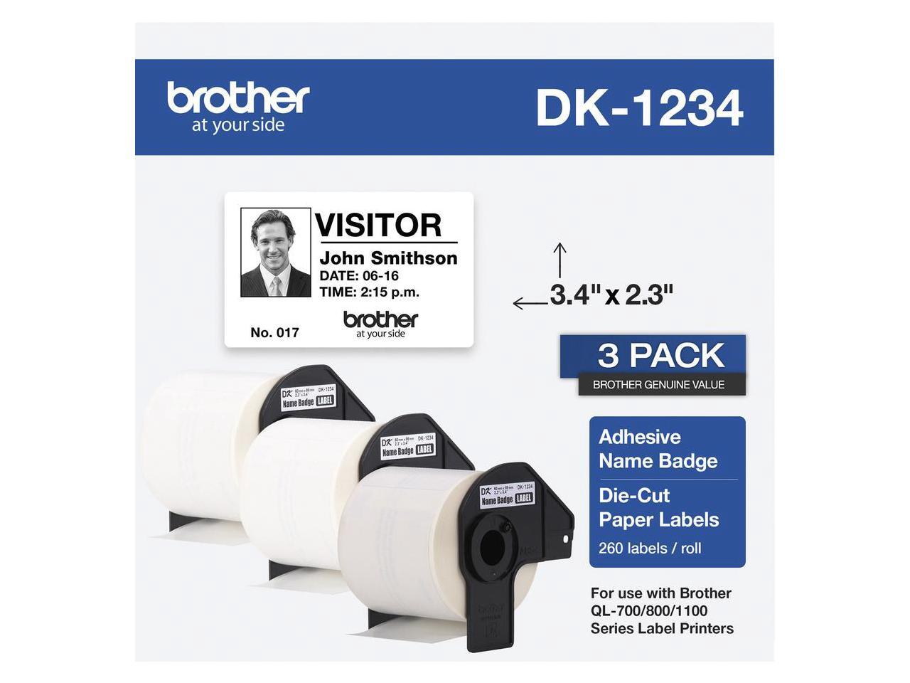 Brother DK-1234 Adhesive Name Badge Paper Labels 3-4/10" x 2-3/10" Black on White 260 Labels/Roll 3 Rolls/Box (DK-12343PK)