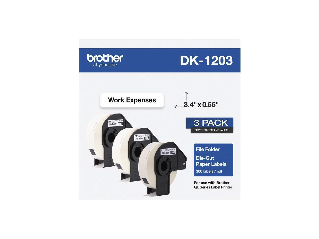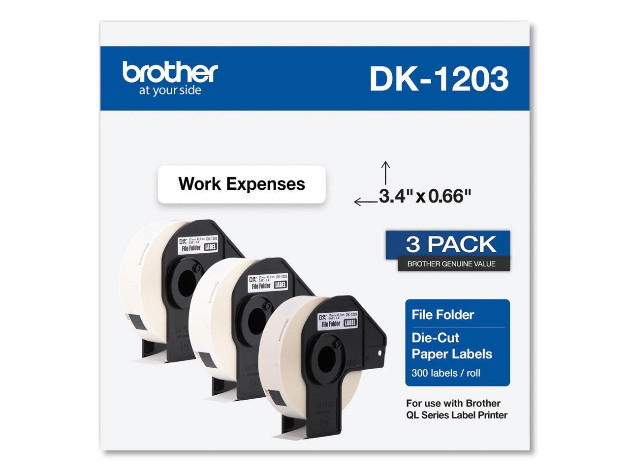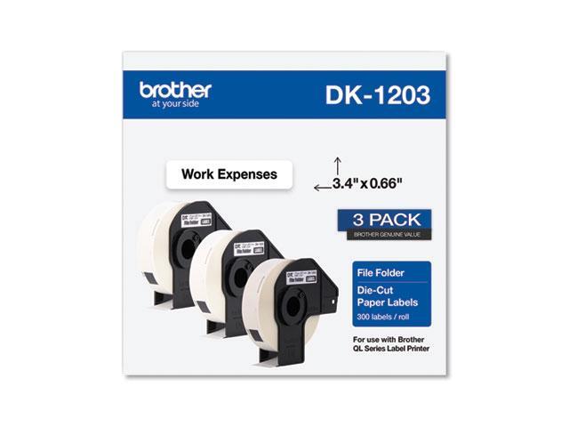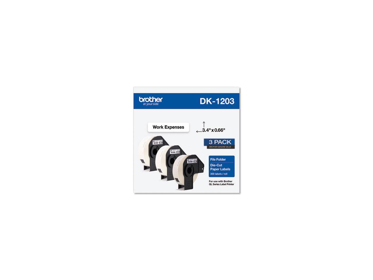 Die-Cut File Folder Labels 0.66 x 3.4 White 300/Roll 3 Rolls/Pack DK12033PK