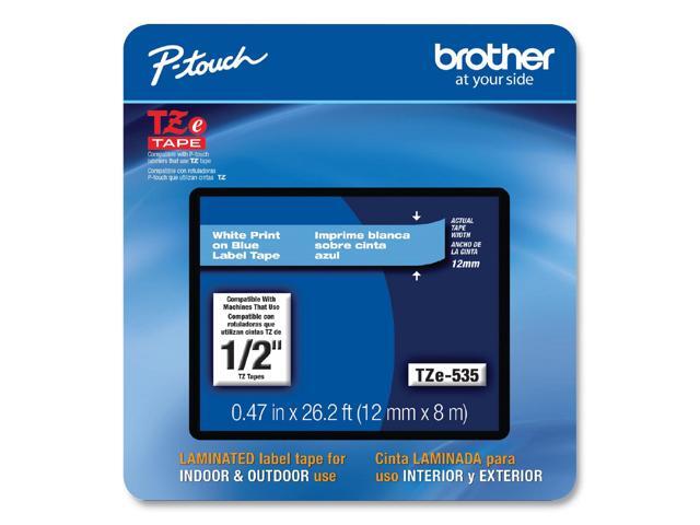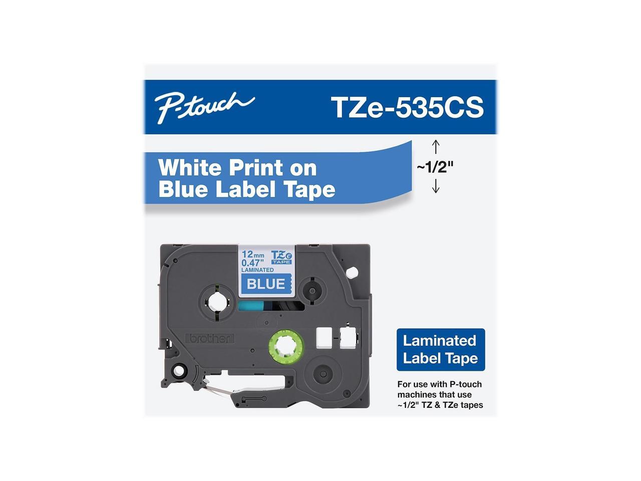 Brother P-touch TZe-535CS Laminated Label Maker Tape 1/2" x 26-2/10' White on Blue (TZe-535CS) TZE535CS