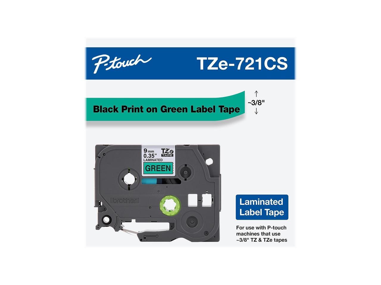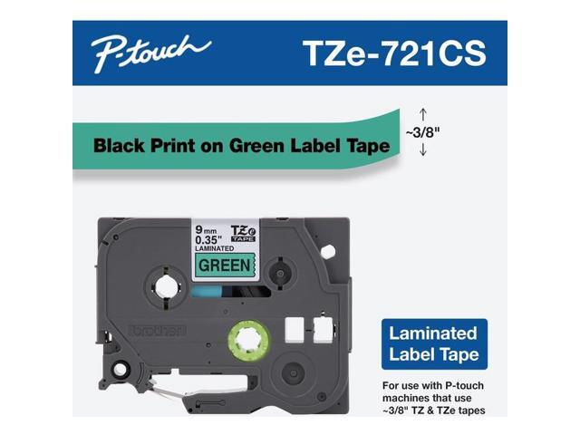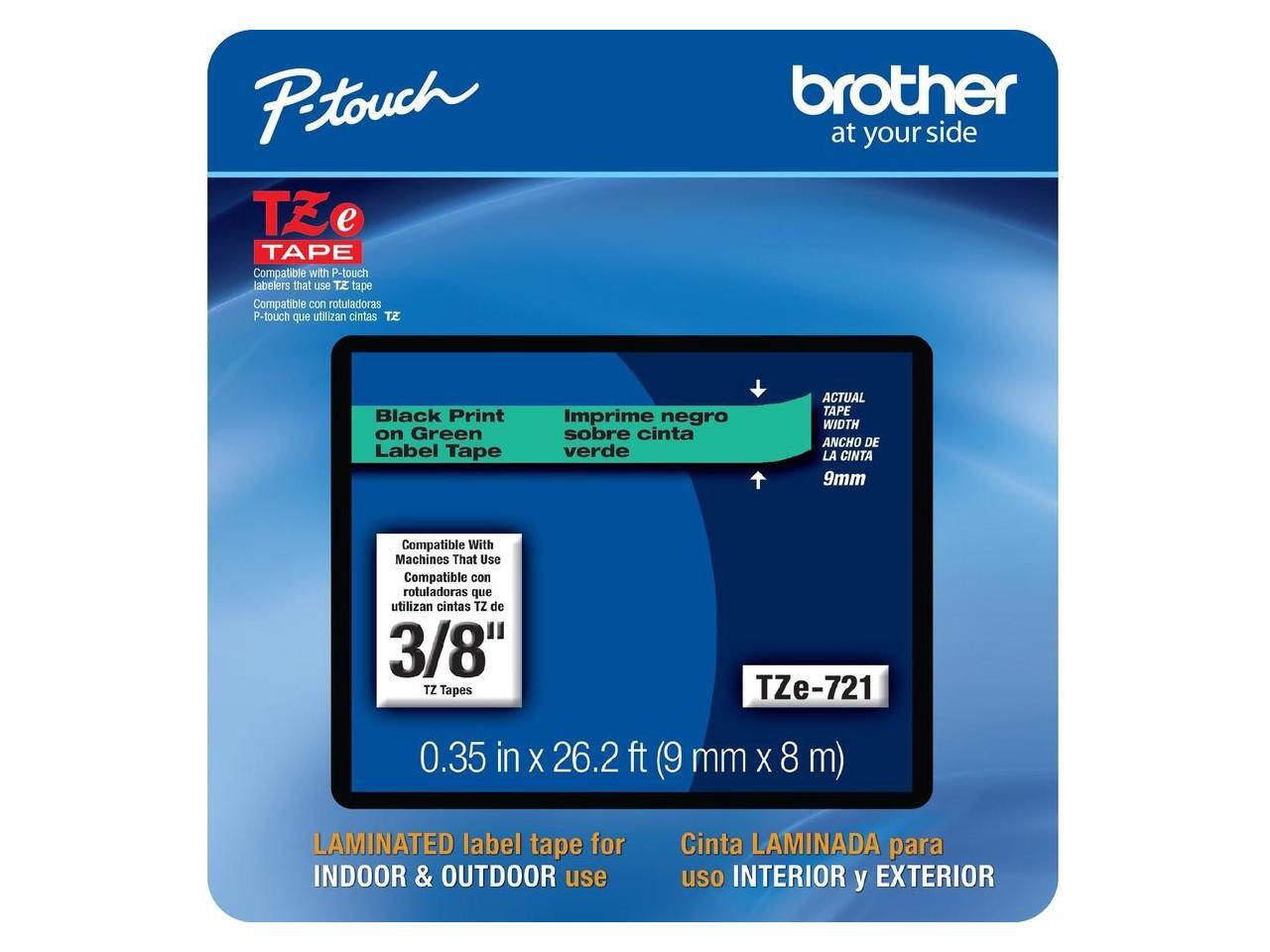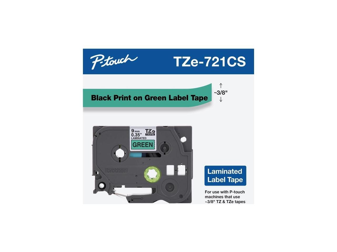 Brother P-touch TZe-721CS Laminated Label Maker Tape 3/8" x 26-2/10' Black on Green (TZe-721CS) TZE721CS