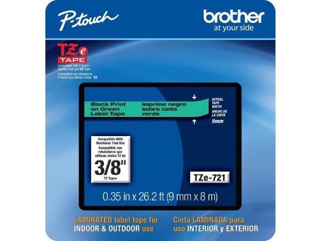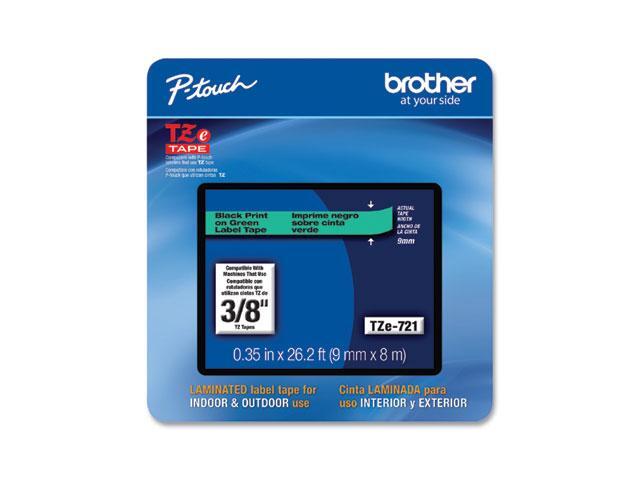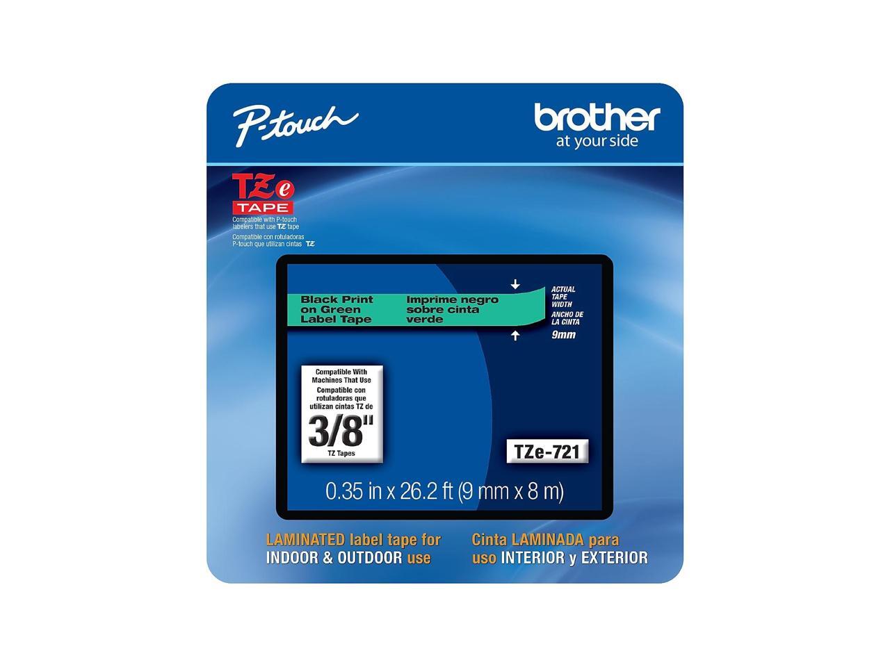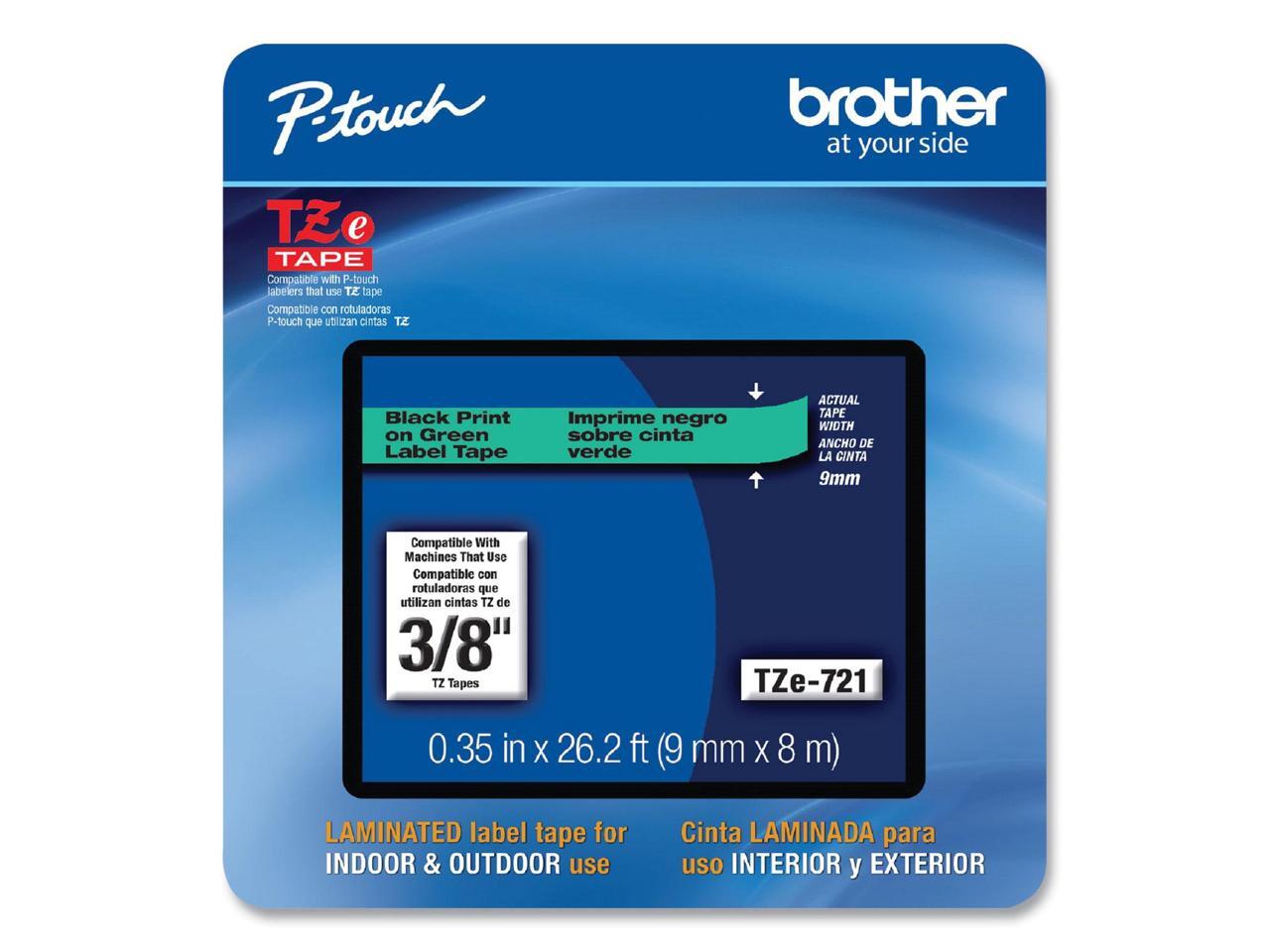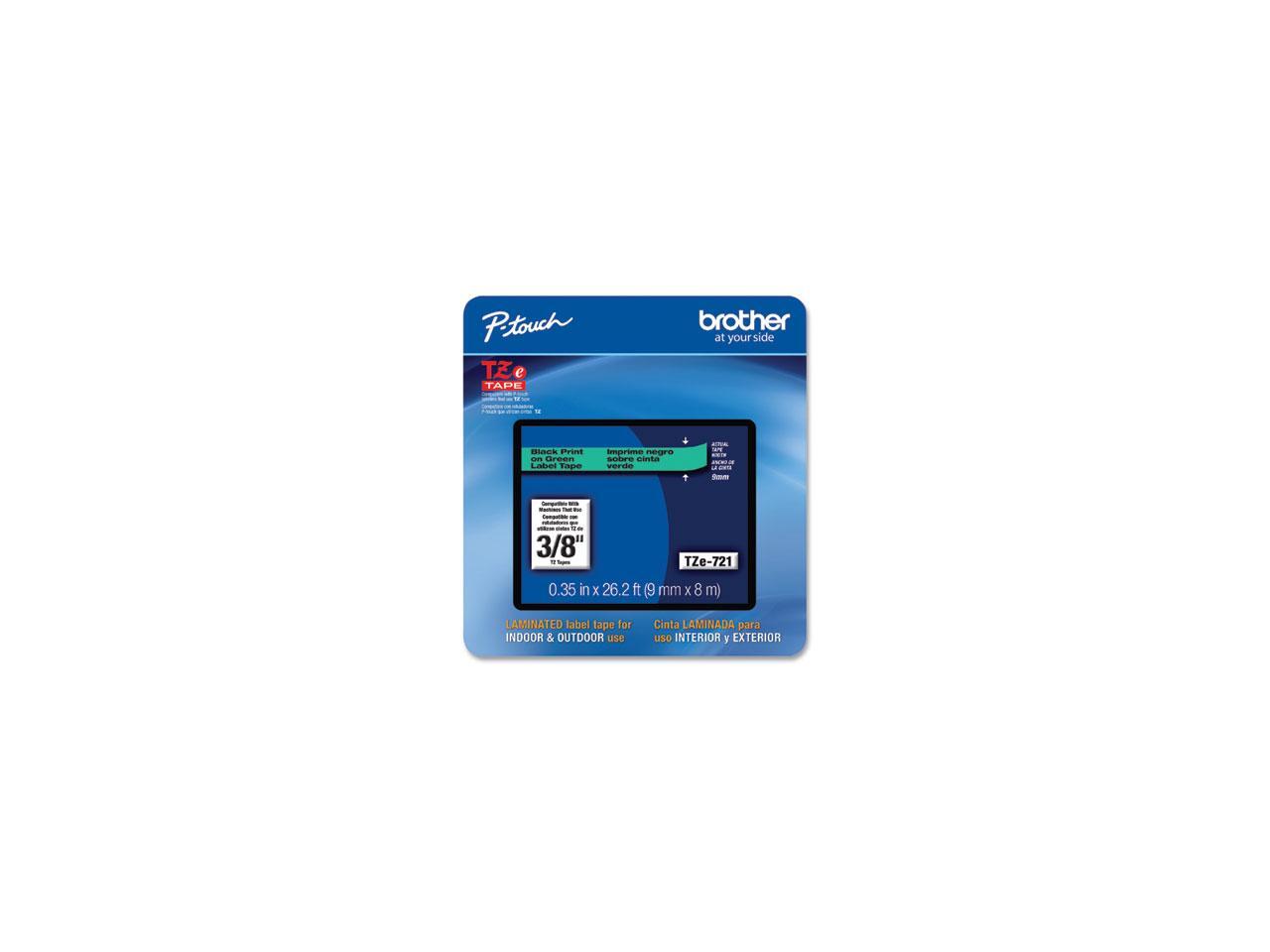 Brother P-touch TZe-721CS Laminated Label Maker Tape 3/8" x 26-2/10' Black on Green (TZe-721CS) TZE721CS