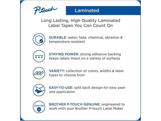 Compatible with machines that use 0.38" TZ and TZe tapes. Easy-to-use: split back design for easy peel and application.