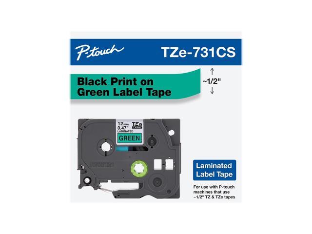 Brother P-touch TZe-731CS Laminated Label Maker Tape 1/2" x 26-2/10' Black on Green (TZe-731CS) TZE731CS