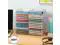This stackable media organizer collection keeps entertainment center cabinets and desktops organized. The clear design compliments any style.