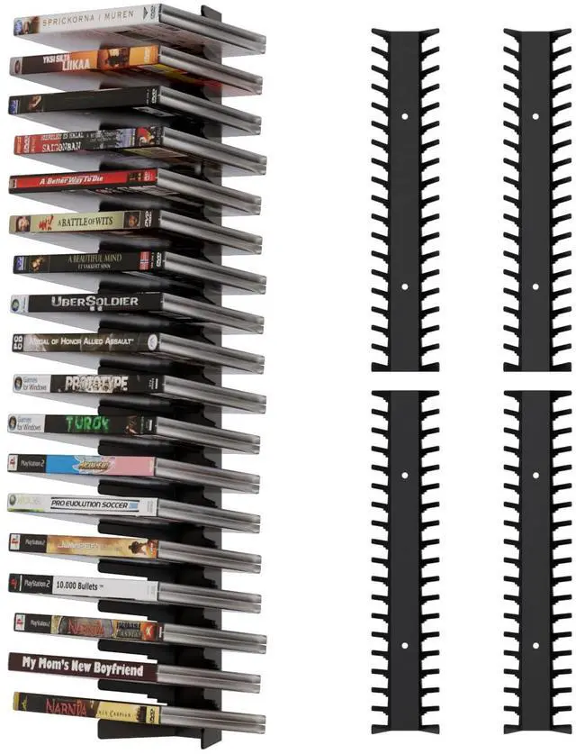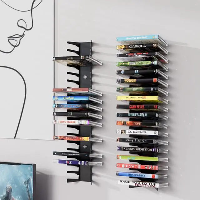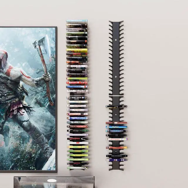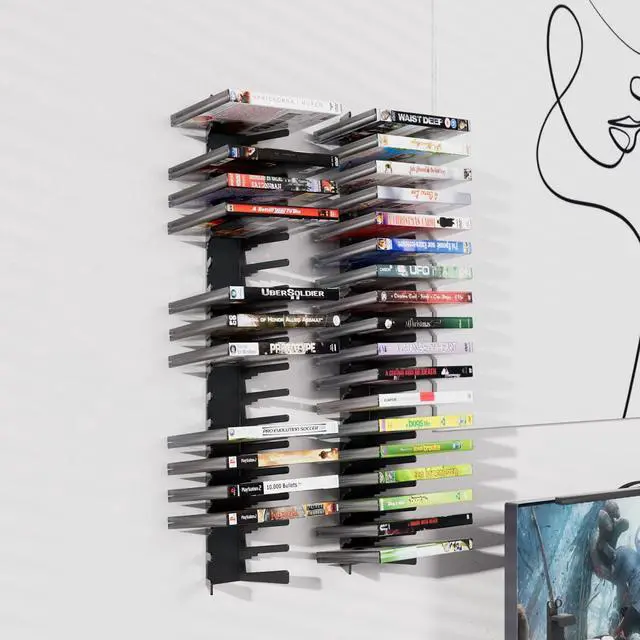 Organize your gaming and media collection with this sleek video game storage wall mount game case holder. designed to keep your ps5, nintendo switch games, dvds, cds, and blu-ray discs neatly displayed and easily accessible. this versatile media shelf is perfect for any game room or entertainment space, offering a stylish and functional solution for your storage needs. the wall-mounted design saves valuable floor space while showcasing your favorite titles. crafted from durable materials, this dvd rack and cd shelf ensures long-lasting use. ideal for gamers and movie enthusiasts alike, it holds multiple game cases, dvds, and cds securely. the compact yet spacious design fits seamlessly into any room, making it a must-have among game room accessories. elevate your media storage with this practical and attractive game console shelf. perfect for organizing your nintendo switch game collection, ps5 games, and more. a great addition to any wall, this dvd storage shelf keeps your entertainment library tidy and within reach. whether you need a dvd stand, cd storage rack, or video game console holder, this multi-functional unit delivers