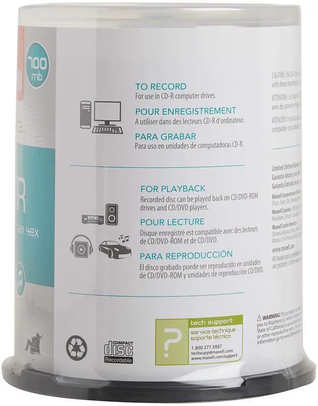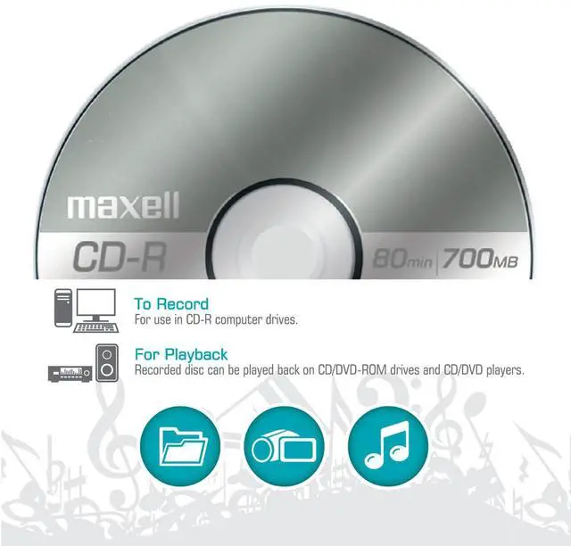 Permanent Storage: Designed for single-time recording, Maxell CD-R Discs guarantee that your data remains secure and unaltered. Store up to 700MB or 80 minutes of content with the confidence that it wont be accidentally erased or overwritten.