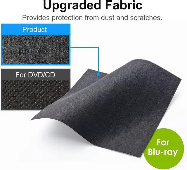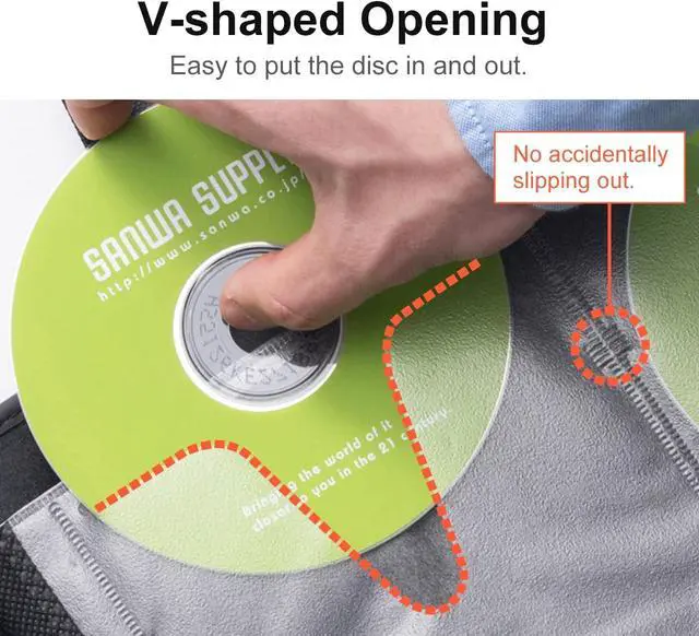 Considerate Design- The non-woven fabric has a slit for easy disc insertion and removal and a side stopper to prevent discs from popping out. Double sewing thread reinforcement on the edge, quite durable. The zipper is high quality and smooth, can be closed easily and perfectly.